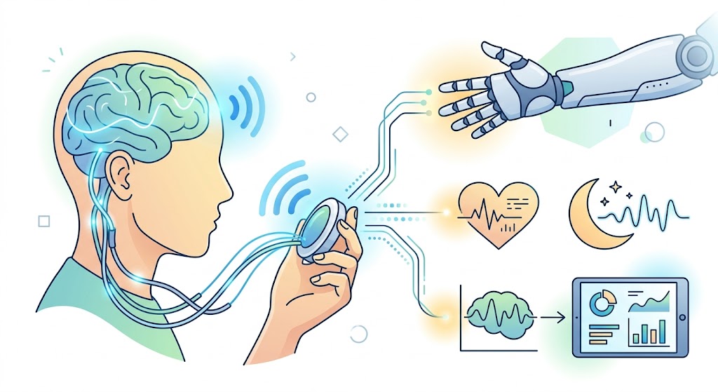 脳が発する微弱な電気信号をコンピューターが瞬時に解析し、その意図をロボットアームや電動車椅子に伝えることで、自分の体の一部のように操作することが可能になります。