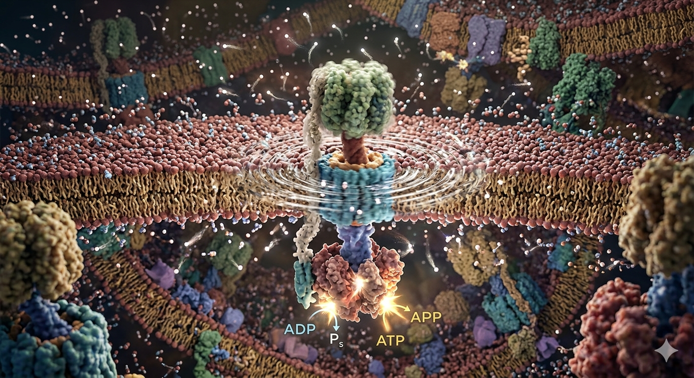 私たちが一呼吸するごとに、体内の数兆個のATP合成酵素が、無秩序な嵐の中で静かに、かつ力強く回転し、生命の輝きを支えています。